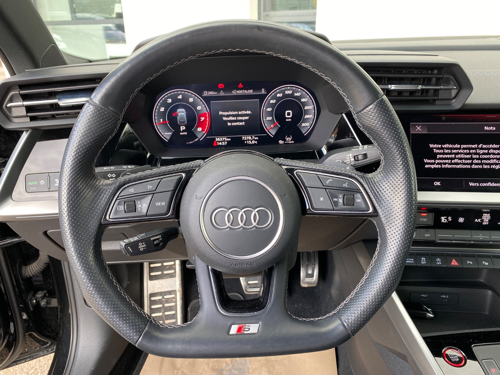 6 haut-parleurs, Accès-/démarrage sans clé Advanced Key (clé confort), Accoudoir central AV avec rangement, Accoudoirs de porte dans simili-cuir, Aide au stationnement AR (APS), Aide au stationnement AV et AR, acoustique et visuel avec affichage sélectif (APS Plus), Airbag conducteur et passager, Airbag coté passager désactivable, Airbag lat AV, Antidémarrage (électronique), Appuie-têtes AR (x 3), Audi connect (Services liés à Internet), Audi connect (système d’appel d’urgence et d’assistance), Audi connect plus (Services liés à Internet), Audi Drive Select, Becquet de pavillon S-line, Boîte de vitesses 7 rapports – Boîte automatique à double embrayage S-tronic, Caméra aide au recul, Carrosserie: 4 portes, Chassis/Suspension sport, Chassis/Suspension sport S-line, Clé télécommande, Climatisation automatique Confort 2 zones, Colonne de direction (Volant de direction) Mécanique Réglage de hauteur / profondeur, Combiné d’instruments digital(e), Combiné d’instruments digital(e) (virtual cockpit), Contrôle dynamique de stabilité (ESP), Contrôle pression pneumatiques, Détecteur de pluie / luminosité, Détecteur présence occupant pour Ceintures de sécurité, Direction progressive, Dispositif antivol pour Roues (écrous antivol), Dossier AR fractionné, éclairage diurne, Electro. Contrôle de stabilité (ESC), Equipement Int. avec inserts finition Aluminium Spectre, Equipement Int. finition/aspect Aluminium, Frein de stationnement électromécanique, Garniture de pavillon Tissu, noir(e), Interface universelle Bluetooth, Jantes alliage léger 8×18 (5 branches doubles en V, Design S, Gris Graphite), Jantes alliage léger 8×19 (structure à 5 branches en 5, gris titane mat, poli), Kit de réparation des pneumatiques, Lave-phares (Lave-projecteurs), Limiteur de vitesse, Miroir de courtoisie éclairé(e), Moteur 2,0 litre(s) – 228 kW 16V TFSI, Multi-Media-Interface MMI basic Plus / MMI Radio Plus, Multi-Media-Interface MMI Navigation Plus avec MMI Touch, Ordinateur de bord, Pack Design noir(e), Pack non fumeur, Pack Rangement et Coffre, Pare-brise verre insonorisant, Pare-chocs Design sport (S-line, couleur caisse), Pédales et Repose-pied dans inox, Peinture spéciale « Blanc ibis », Phares à matrice de LED, Prise élect. (Prise 12V) dans Console centrale AV, Projecteur LED, Protecteurs de bas de marche avec revêtement aluminium et Monogramme, éclairé(e), Réception radio digital(e) (DAB), Restylage FB (Option interne), Rétroviseur ext à réglage électrique et dégivrant, (D+G), Rétroviseur ext à réglages électriques, dégivrant et rabattable, avec fonction électrochrome et indexage à la marche arr, Rétroviseur ext finition/aspect Aluminium mat, Rétroviseur Int avec fonction électrochrome, Sécurité enfant à commande électrique, Sellerie : Microfibres Dinamica / simili-cuir mono.pur avec logo en relief dans accoudoirs sièges AV, Sellerie : Tissu Impulsion / simili-cuir mono.pur 550 combinaison, Sièges AV à réglages électriques, Sièges AV réglable manuellement, Sièges sport AV, Sound-System Bang & Olufsen, Sound-System DSP / Audi Sound-System, Supports Isofix pour siège enfant, Surtapis velours, Système d’airbag crânien (Sideguard), Système d’antiblocage de frein (ABS), Système d’assistance de conduite: aide à l’évitement de collision, Système d’assistance de conduite: Assistance au démarrage (hold assist), Système d’assistance de conduite: assistance au stationnement, Système d’assistance de conduite: Assistant de freinage (Audi pre sense front), Système d’assistance de conduite: Assistant détresse avec automatique Appel d’urgence, Système d’assistance de conduite: Avertissement de franchissement involontaire de ligne, Système d’assistance de conduite: Feux de route automatiques, Système d’assistance de conduite: Régulateur de vitesse adaptatif (Régulateur de vitesse adaptatif) avec régulateur de d, Témoin contrôle pneumatiques, Toit panoramique inclinable électrique, Trousse premiers secours / boîte premiers secours, Vitrage AR surteinté (vitrage Privacy), Volant de direction (Cuir – 3 branches) avec multifonctions plus et palettes changement vitesse, Volant de direction (Sport/cuir – 3 branches, partie inférieur plate) avec multifonctions et palettes changement vitesse, contactez-nous …………………….. INFORMATIONS…………………… L'Automobile pour tous depuis 1990