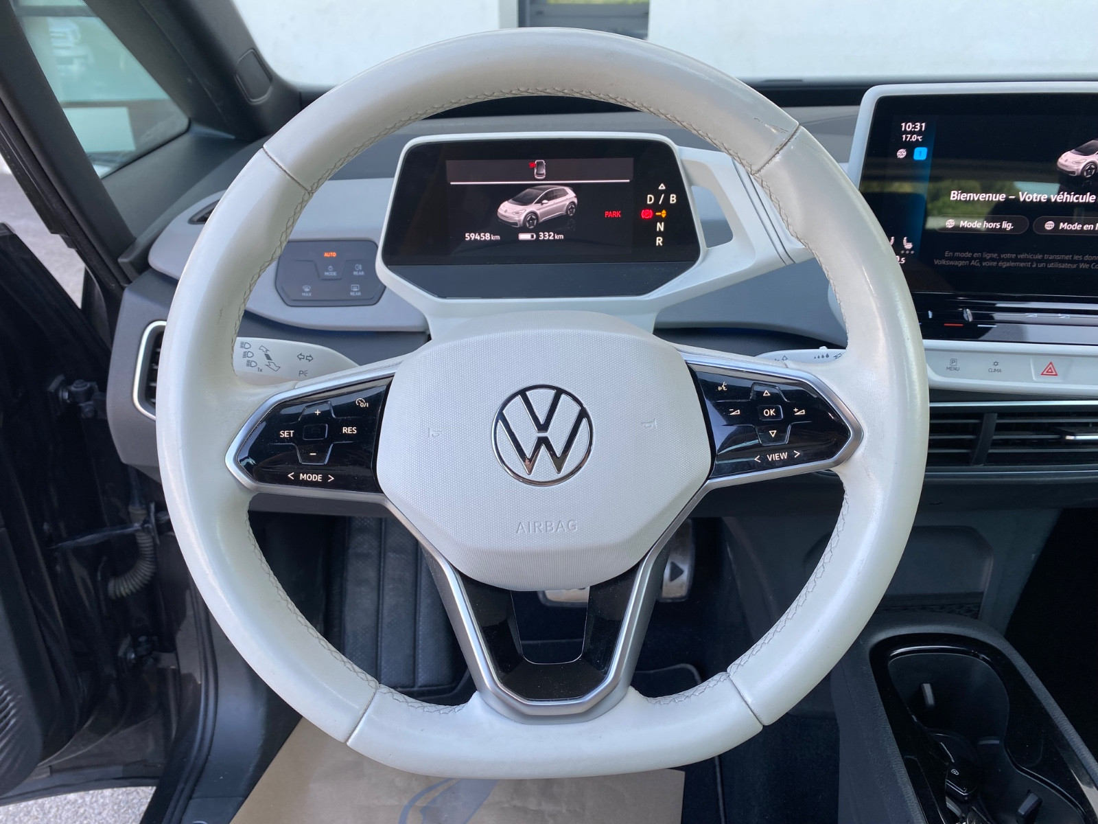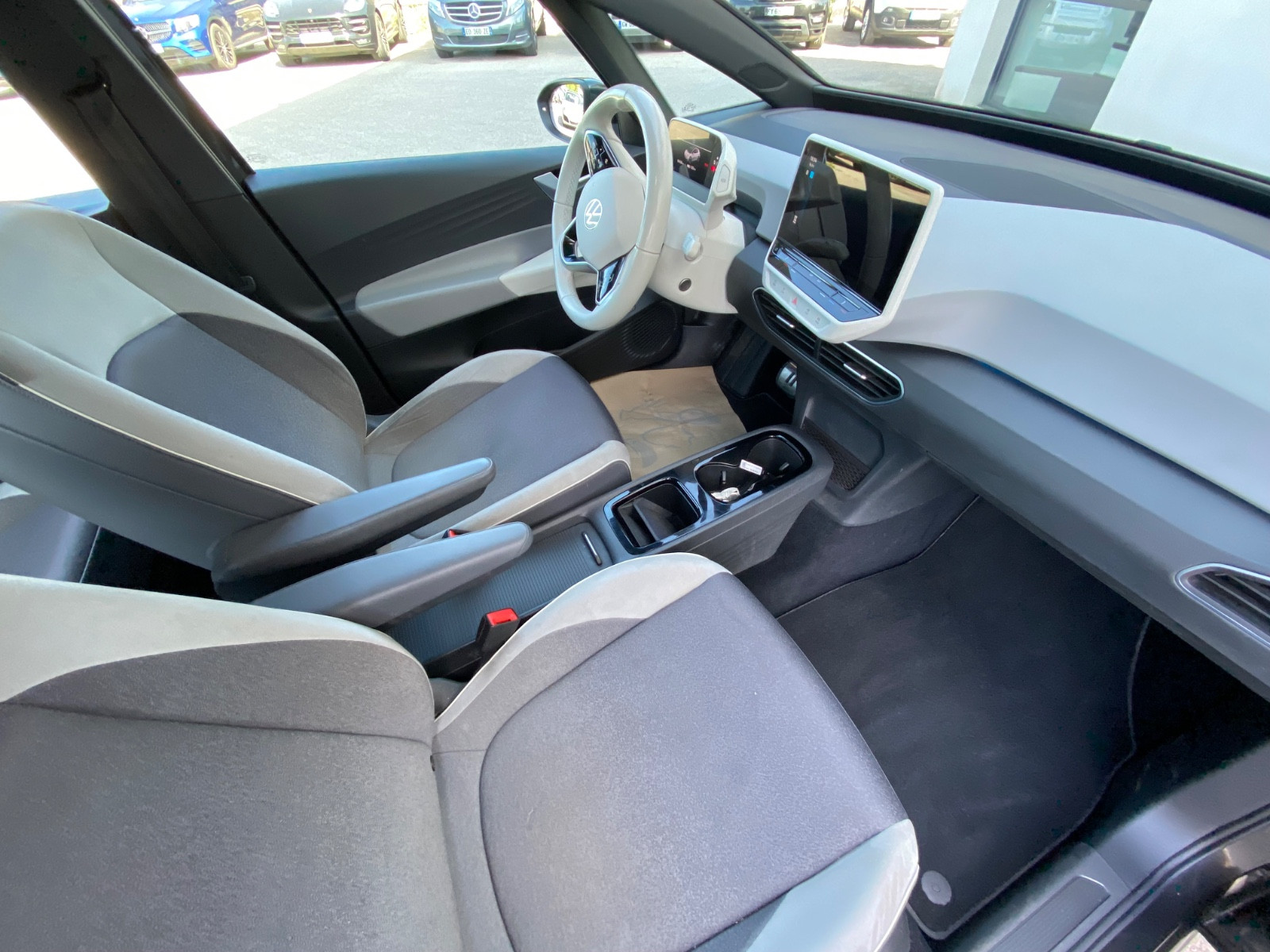 5 places, Accoudoirs pour siège conducteur et passager, Aide au stationnement AV et AR, Airbag conducteur et passager, Airbag passager désactivable, Airbag lat AV avec airbag central et Airbag crânien, Alarme pour Ceintures de sécurité AV et AR, Antennes Diversity, Antidémarrage (électronique), App-Connect, App-Connect comprenant App-Connect Wireless (Apple CarPlay, Android Auto), Appuie-têtes AR (x 3), Assistant de freinage, Batterie HT 82 kWh brut / 77 kWh net, Boîte de vitesses pour véhicule électrique, Boîte premiers secours et Triangle de présignalisation, Carrosserie: 5 portes, Ceintures de sécurité AV avec prétensionneur de ceinture, Climatisation Climatronic 1 zone, Colonne de direction (Volant de direction) Réglage mécanique, Réglage de hauteur / profondeur, Contrôle dynamique de stabilité (ESP) Assistant de freinage, ASR/ABS, EDS, Contrôle dynamique de stabilité (ESP) avec Amplificateur de freinage électromécanique, Contrôle pression pneumatiques, Câble de recharge avec connecteur type 2 (« Mode » 3), Direction assistée électromécanique et asservie à la vitesse, Dispositif antivol pour Roues (écrous antivol), Dispositif de commande vocale, Dossier AR deux parties avec Accoudoir central et trappe de chargement, Enjoliveur de pavillon, admission d’air AV et Elargisseur de bas de caisse noir(e) mat, Equipement Base, Equipement Int. Éléments de commandes et Encadrement Instruments noir(e), Equipement en sièges : 5 places, Essuie-vitres avec Commande temporisée, Feux AR. LED, Filtre d’habitacle Actif/Active filtre combiné, Fonction de navigation Discover pro comprenant Streaming & Internet (Ecran tactile couleur), Frein de stationnement électrique avec Fonction Auto-Hold, Garniture de porte simili-cuir, Haut-parleurs (5), Interface Bluetooth pour Téléphone portable, Interface multimédia 2 x USB (type C) AV, Jantes alliage léger 7,5×19 (Andoya, noir(e) poli), Keyless-Start, Limiteur de vitesse, Lève-vitre électrique AV et AR, Moteur électrique 150 kW (cont. 70 kW), Pack Confort, Pack Intérieur Style (Volant de direction noir(e)), Pack infotainment, Pare-brise verre feuilleté teinté(e), Pare-soleil avec miroir(s) (éclairé(e)), Pavillon en Couleur contrastante, Peinture spéciale gris pierre de lune uni, Pro S, Projecteur LED comprenant Allumage automatique des feux de croisement, Protection acoustique des piétons, sound extérieur (e-sound), Puissance de charge batterie HT 11 kW (Courant alternatif AC), Pédales inox, Réception radio digital(e) (DAB+), Rétroviseur Int anti-éblouissement, Rétroviseur ext Asphérique, gauche, Rétroviseur ext convexe, droit, Rétroviseur ext à réglage électrique et dégivrant, Rétroviseur ext à réglages électriques, dégivrant et rabattable avec Rabattement de rétroviseur droit, Sellerie : Tissu Flow, Services online mobile We Connect, Support à boissons AV, Supports Isofix pour siège enfant sur Siège passager et Siège AR (comprenant sièges enfant i-Size), Système audio Ready 2 Discover (comprenant Streaming & Internet, Touchscreen, Bluetooth), Système d’antiblocage de frein (ABS), Système d’appel d’urgence, Système d’assistance de conduite: Reconnaissance des panneaux de signalisation, Système d’assistance de conduite: assistant maintien de trajectoire (Lane Assist), Système d’assistance de conduite: détection de la fatigue, Système d’assistance de conduite: système de détection d’obstacles (Front assist) avec fonction freinage d’urgence en vi, Système d’assistance de conduite: sélection style de conduite, Système de service : Mise en réseau intelligente du véhicule (Car2X), Témoin contrôle pneumatiques, Vitrage athermique teinté vert (Lat / AR), Volant de direction chauffant(e)/dégivrant(e) (Cuir) avec multifonctions, éclairage ambiant (30 couleurs), contactez-nous …………………….. INFORMATIONS…………………… L'Automobile pour tous depuis 1990